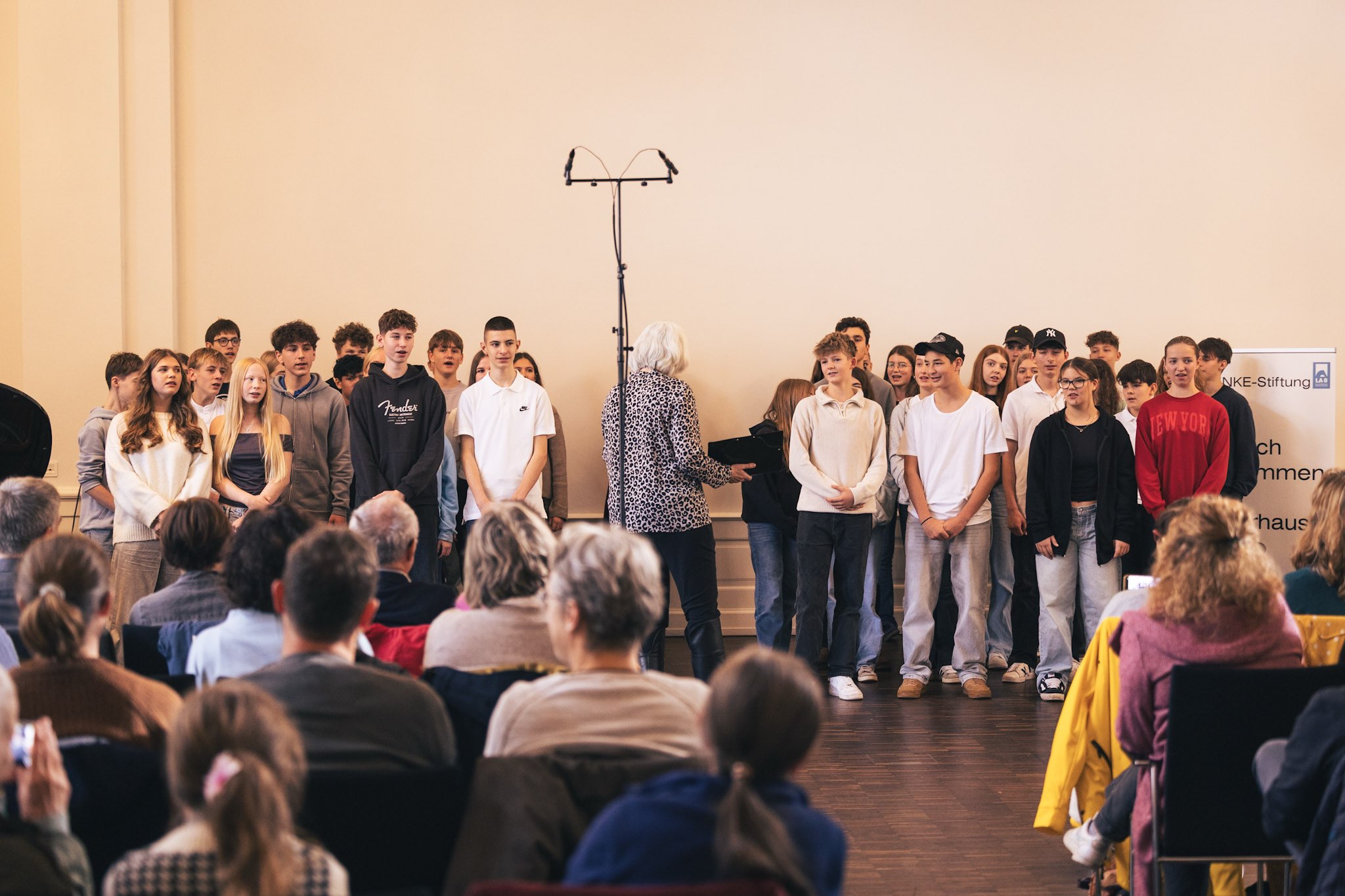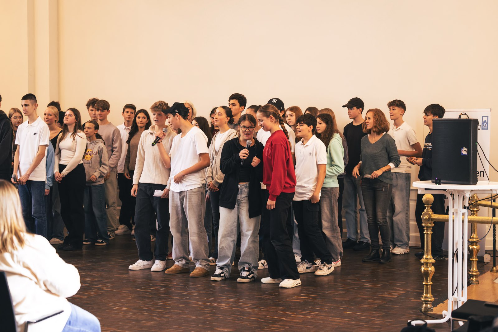 Vom 22. bis 24. Oktober erschlossen sich für die Musikprofilklassen 9 und die Klasse 9a völlig neue und kreative Klangräume: Im Projekt „Brahms meets Rap“ arbeiteten die Schülerinnen und Schüler daran, die Musik und Texte von Johannes Brahms mit eigenen Beats, Raps und Textideen in die Gegenwart zu holen. Unter der Leitung von Sopranistin Daniela Denschlag, Moderator und Sänger Jan König und Pianist Markus Kreul wurde an drei Tagen intensiv geprobt – im Kloster Lichtenthal, im Brahmshaus Baden-Baden und am Goethe-Gymnasium. Die Jugendlichen dichteten Brahms’ Volksliedtexte neu, brachten sie in Rapform und verbanden die ursprünglichen Themen mit aktuellen Fragen und Emotionen aus ihrer Lebenswelt.