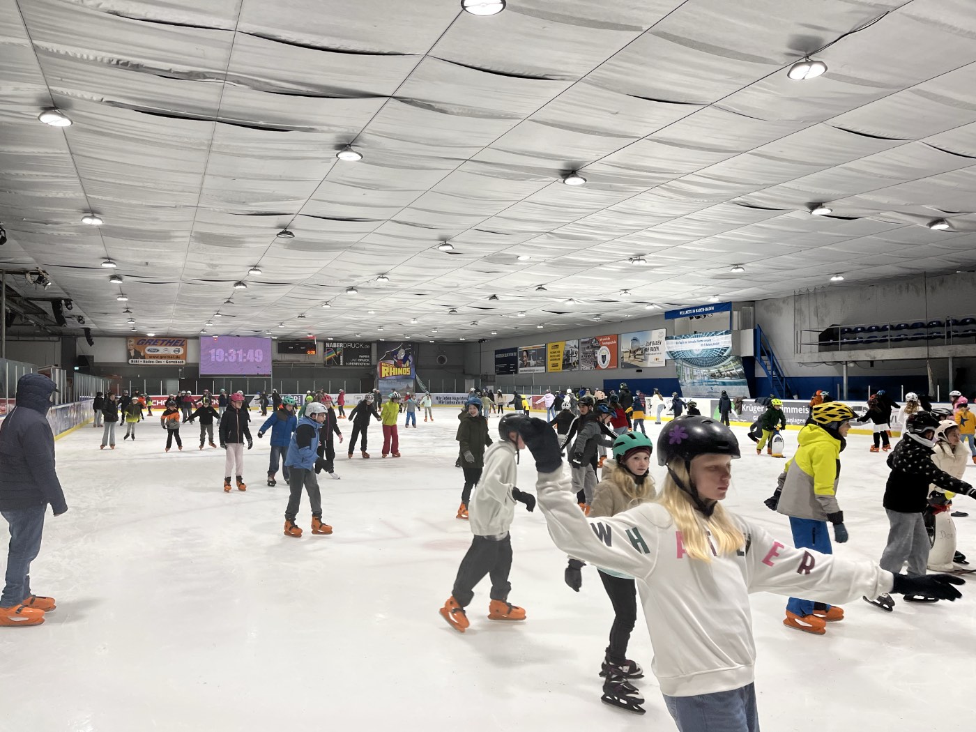 Am Freitag gehörte die Arena dann den Fünft- und Sechstklässlern. Mit flotter Musik verwandelte sich das Eislaufen in ein kleines Disco-Event, bei dem nicht nur sportliches Können, sondern auch gute Laune gefragt war. Für manche war es der erste Versuch auf Kufen – eine Herausforderung, die sie mutig annahmen und erfolgreich meisterten.