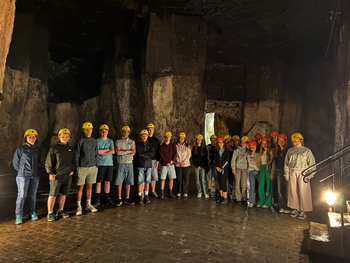 Wir, der Geo-LK aus der J1, starteten unsere Exkursion am 2. Juni 2025 bereits früh am Morgen. Unser Ziel war die Vulkaneifel, in der man zahlreiche vulkanische Phänomene beobachten kann. Auf uns wartete ein abwechslungsreiches, zweitägiges Programm:Am ersten Tag der Exkursion stand als erster Programmpunkt der Werkbesuch bei Gerolsteiner an. Wir bekamen einen spannenden Einblick in die Abfüllung der Getränke und durften selbst einige dieser probieren.cIm Anschluss besuchten wir das Gemündener Maar, eines der drei Dauner Maare, wo wir die Landschaftsform mit einer Drohne genauer untersuchten und anschließend die Maare kartierten. Mit einem Zwischenstopp beim Kloster Maria Laach ging es weiter zum Laacher See. Durch eine GFS erfuhren wir mehr über die Entstehung des Sees, der heute noch vulkanische Aktivitäten, die sogenannten Mofetten, aufweist.