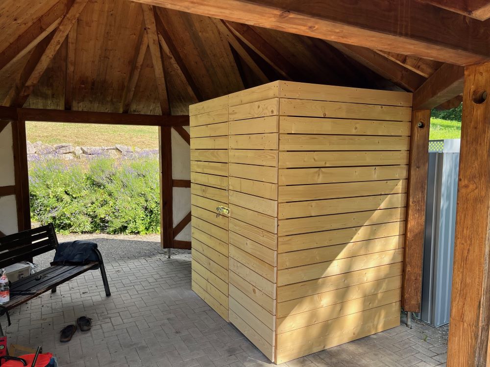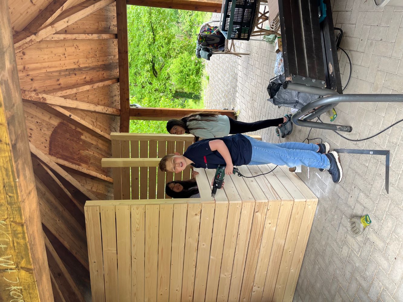 Dank tatkräftiger Schülerinnen und Schüler und großzügiger Unterstützung von außen verwandelt sich unsere grüne Oase in einen noch lebendigeren Lern- und Erlebnisraum. Den perfekten Start machte eine großzügige Spende der Hördener Holzwerke. Mit diesem Holz konnte die Garten-AG unter dem Pavillon einen großen, robusten Holzschrank für all ihre Arbeitsgeräte bauen. Endlich Ordnung und Schutz für Spaten, Harken & Co.! Ein besonders herzliches „Danke Schön!“ geht an Geschäftsführer Dominik Strobel, selbst ehemaliger Goethe-Schüler, für diese wertvolle Unterstützung. Auch Uwe Noll danken wir sehr für seine Hilfe mit Rat und Tat beim Bau.