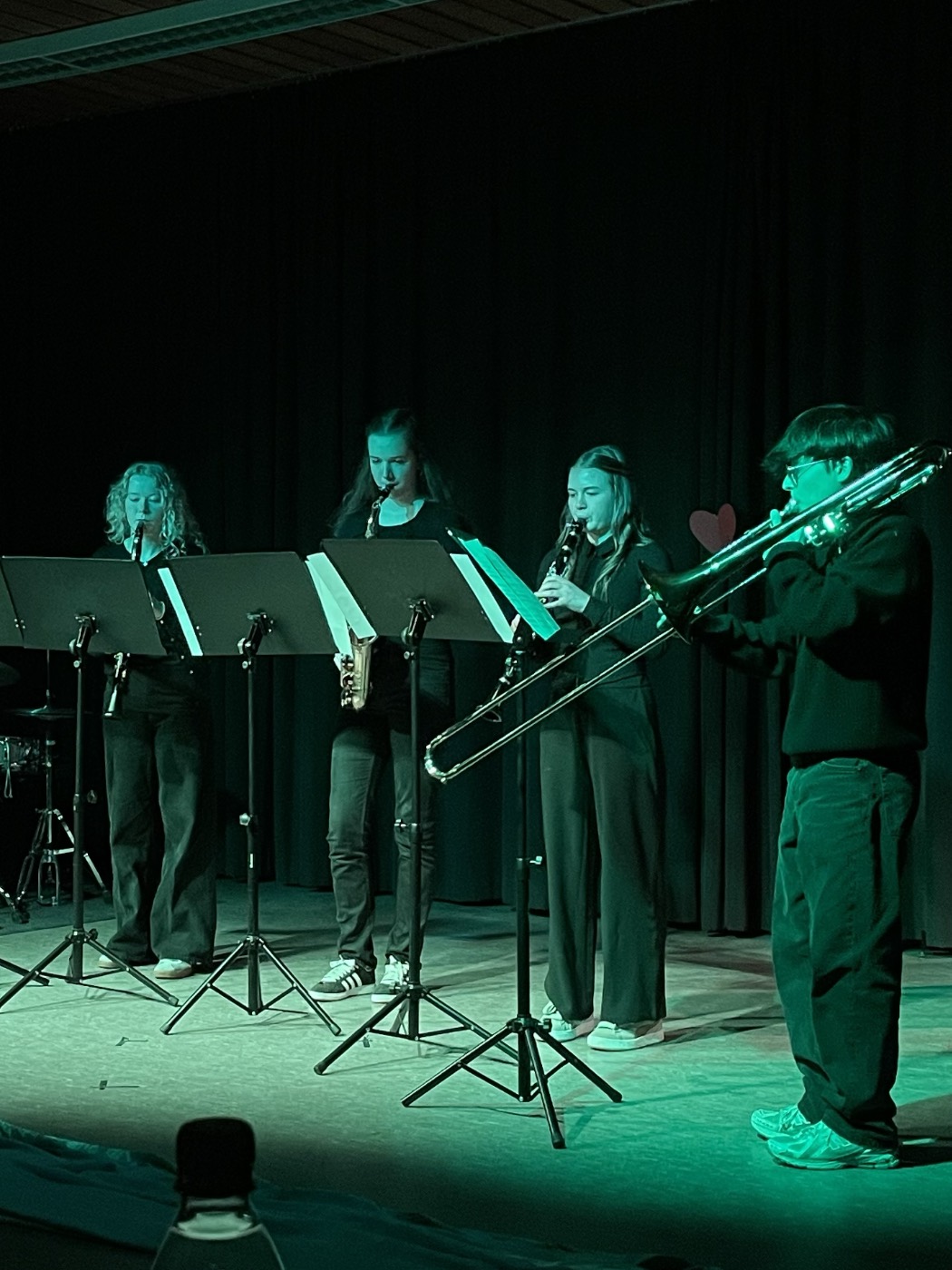 Im Rahmen einer kreativen Auseinandersetzung mit Franz Schuberts Liederzyklus „Die Schöne Müllerin“ gestalteten die Schülerinnen und Schüler des Leistungsfachs Musik der J2 einen beeindruckenden musikalischen Abend an unserer Schule. Mit viel Engagement präsentierten sie u.a. einen eigenen Song, kunstvolle Arrangements, einen Tanz, sowie kleine Schauspielsequenzen und selbst verfasste Texte, die die Thematik des Zyklus auf unterschiedliche Weise aufgriffen.