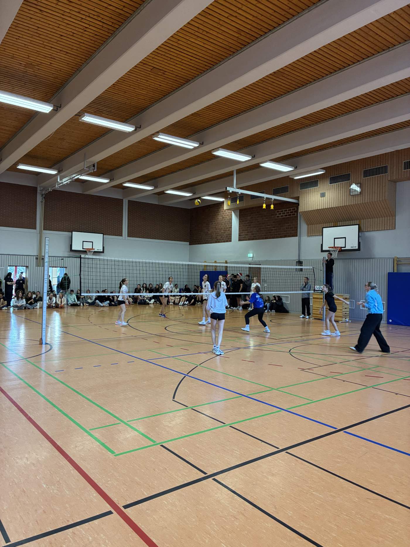 Auch in diesem Schuljahr veranstaltete die Sportfachschaft erneut das inzwischen fest etablierte Nikolaus-Volleyballturnier für die Klassenstufen 10, J1 und J2. Insgesamt nahmen am 18. Dezember 20 Mannschaften teil und sorgten mit spannenden Begegnungen, großem sportlichem Einsatz und einer mitreißenden Stimmung für einen gelungenen Turniertag. Gespielt wurde im Quattrovolleyball-Format, bei dem jeweils vier Spielerinnen und Spieler pro Team auf dem Feld standen. Das Teilnehmerfeld setzte sich aus zehn Herrenmannschaften, sieben Damenmannschaften sowie drei Mixed-Teams zusammen, was für abwechslungsreiche und faire Spiele sorgte.Vertreten waren Teams des Goethe-Gymnasiums Gaggenau sowie des Albert-Schweitzer-Gymnasiums aus Gernsbach.