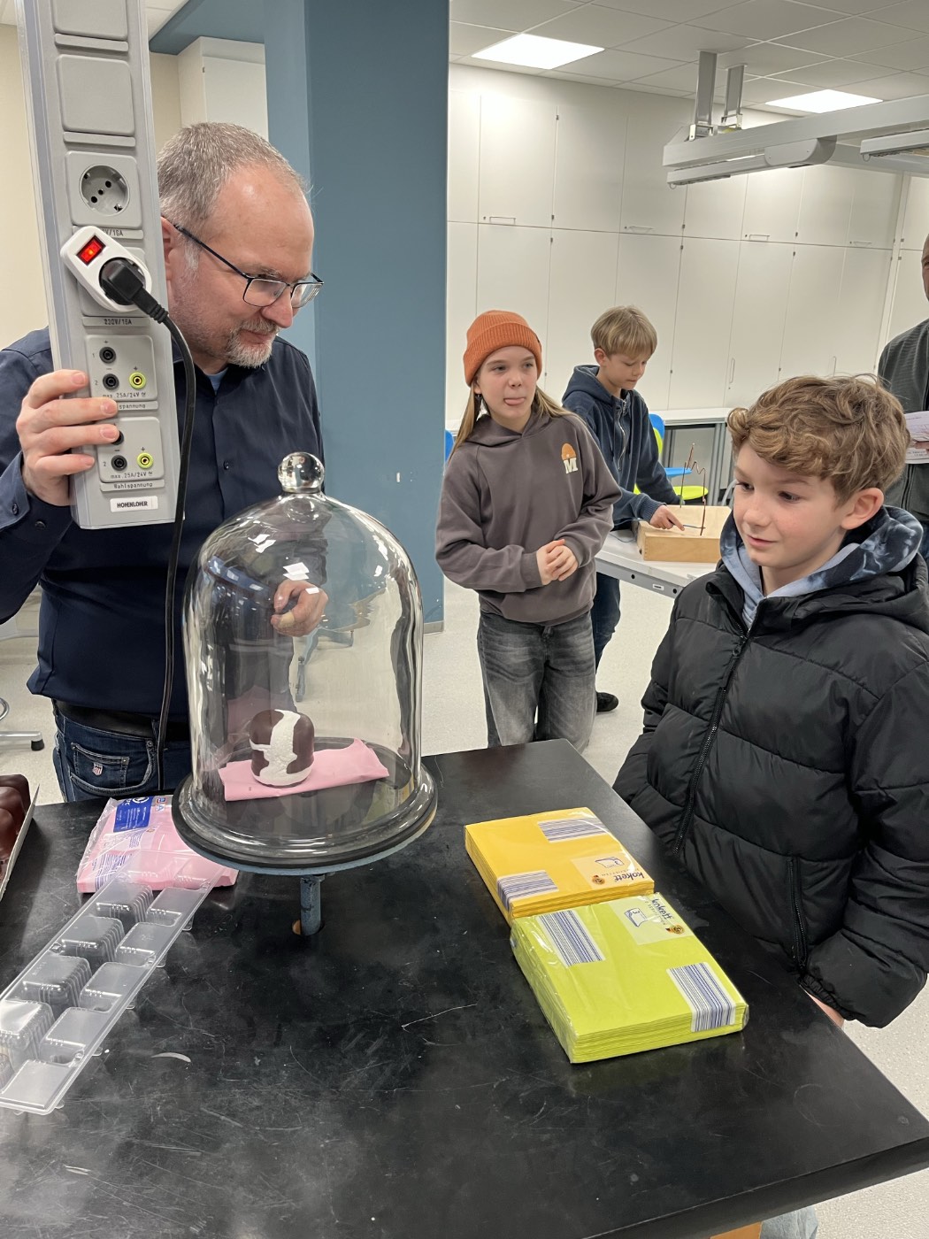 Der Abend der offenen Türen am 6.2.2026 bot einen lebendigen und eindrucksvollen Einblick in das vielfältige Schulleben. Zahlreiche Viertklässlerinnen und Viertklässler kamen gemeinsam mit ihren Eltern und nutzten das umfangreiche Angebot mit großem Interesse und sichtbarer Begeisterung.In den Fachräumen der Naturwissenschaften, Kunst und Musik warteten abwechslungsreiche Mitmachangebote, knifflige Rätsel und spektakuläre Experimente auf die jungen Gäste. Besonders die naturwissenschaftlichen Versuche sorgten für Staunen und weckten die Neugier auf das Lernen am Gymnasium.