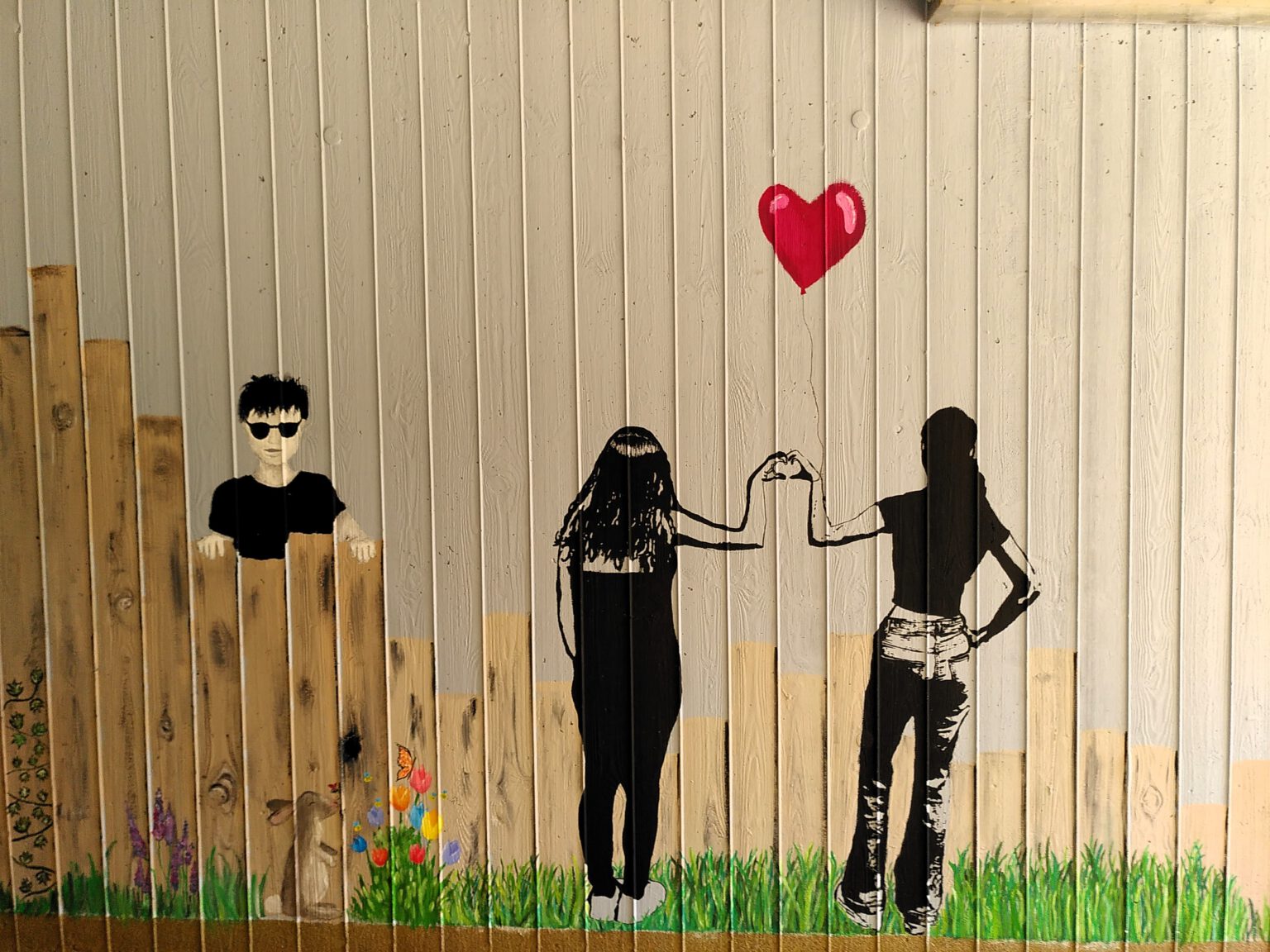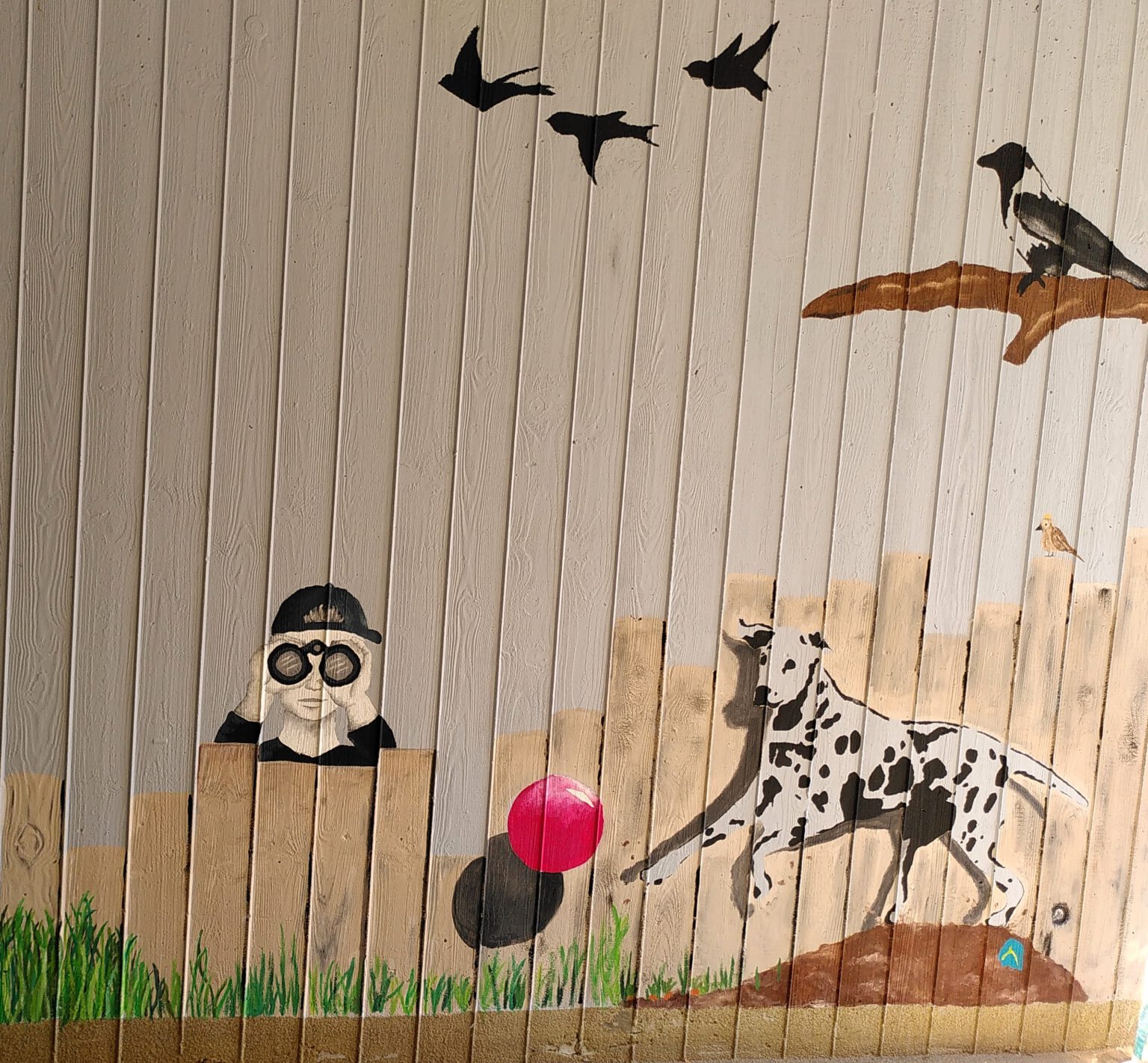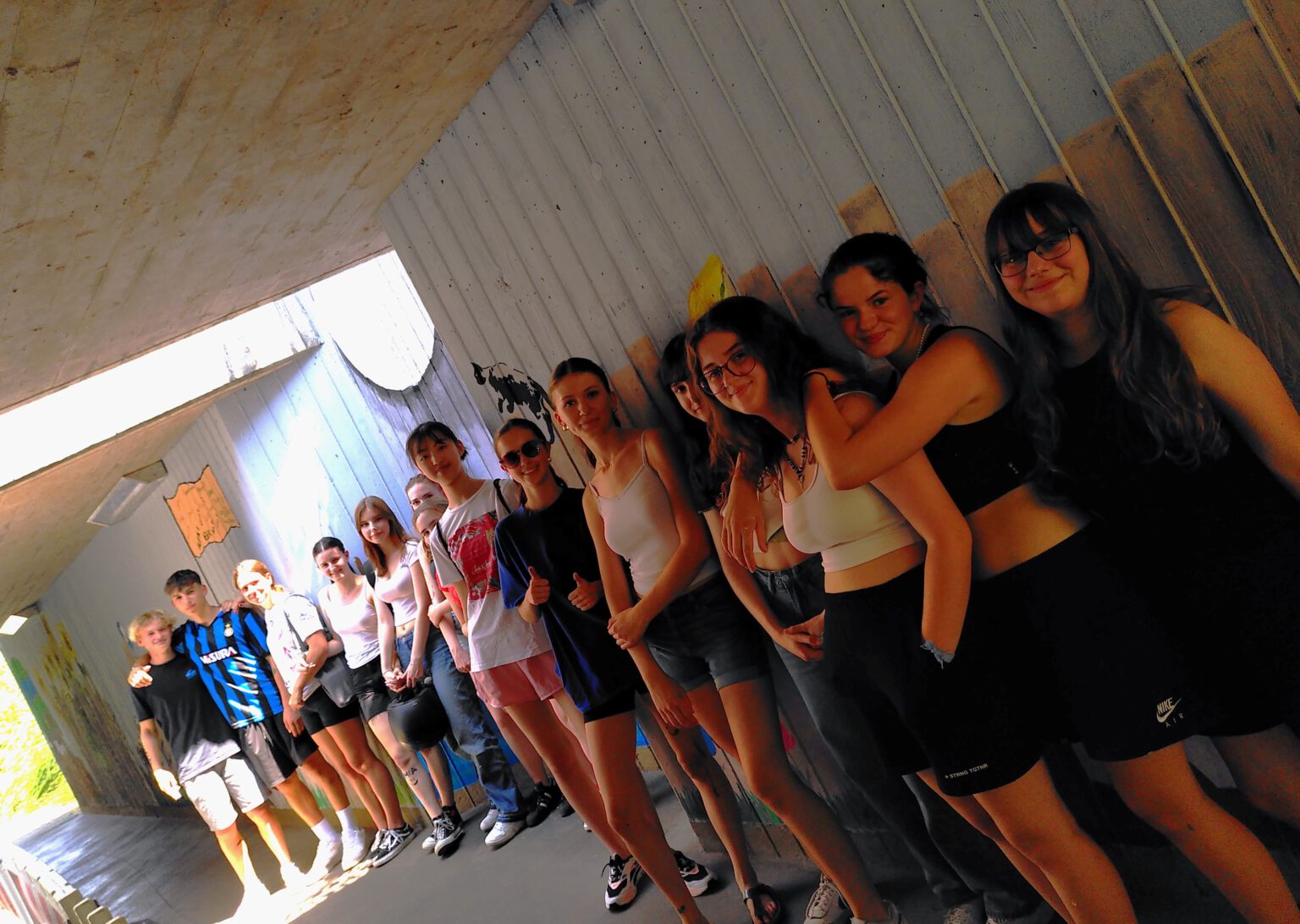 Heute ist es fertig geworden! 20 Schülerinnen und Schüler aus den 10. Klassen haben eine Wand der Unterführung unter der Bundesstraße beim Unimogmuseum gestaltet. Mit Farbe und Pinsel wurden mit Hilfe von Stencils verschiedene Motive rund um einen Zaun aufgetragen. Die Jugendlichen haben dann rundum ihren Ideen freien Lauf gelassen, so dass ein abwechslungsreiches und fröhliches Kunstwerk auf gut 20 Metern Länge entstanden ist.